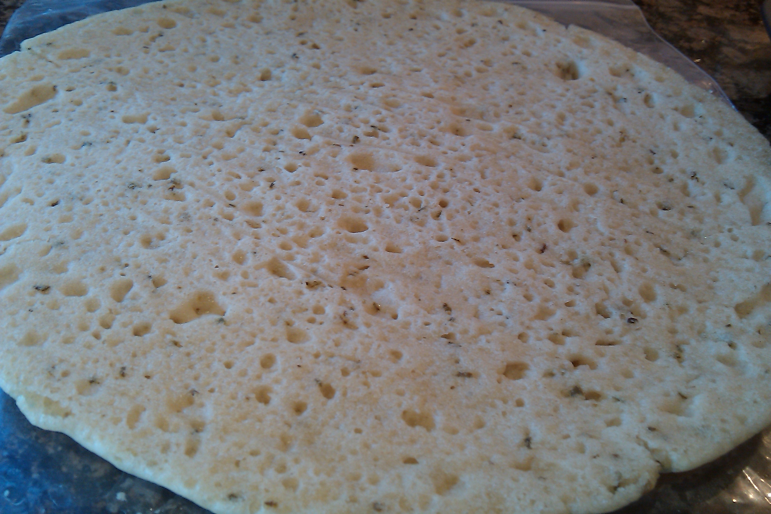 For our Christmas Dinner, we decided to make some pizzas. My husband had ordered pizza crusts from Mariposa Baking Company when he ordered the Chrismukkah goodies. Above is what one defrosted crust looks like. Below is one finished pizza!