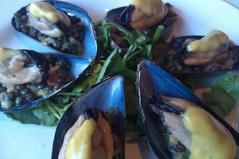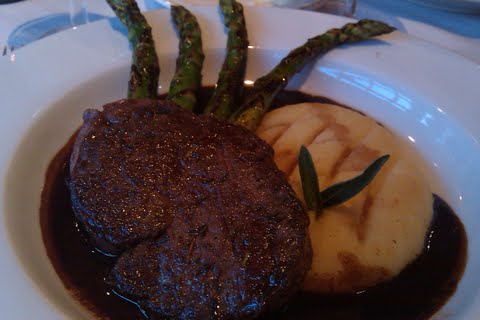 Tonight we went to Downey’s, which is consistently rated one of the best restaurants in Santa Barbara. I was interested to see how gluten-free friendly they were. Our waiter was really good, running down the menu and letting me know what was safe and what to avoid. I started with the mussels. They were prepared with a bit of curry and served on lentils. Then I had the steak prepared with grilled asparagus and pureed potatoes.