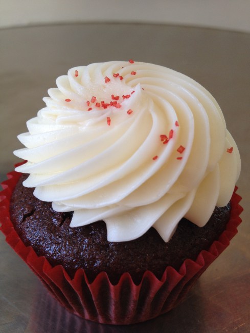 Today was one of those days where I consumed anything and everything. When it came time to have some dessert, I headed over to Crushcakes and got a gluten-free red velvet cupcake. I am not a frequent cupcake eater, but the frosting on this cupcake may have changed that for me. Yum.