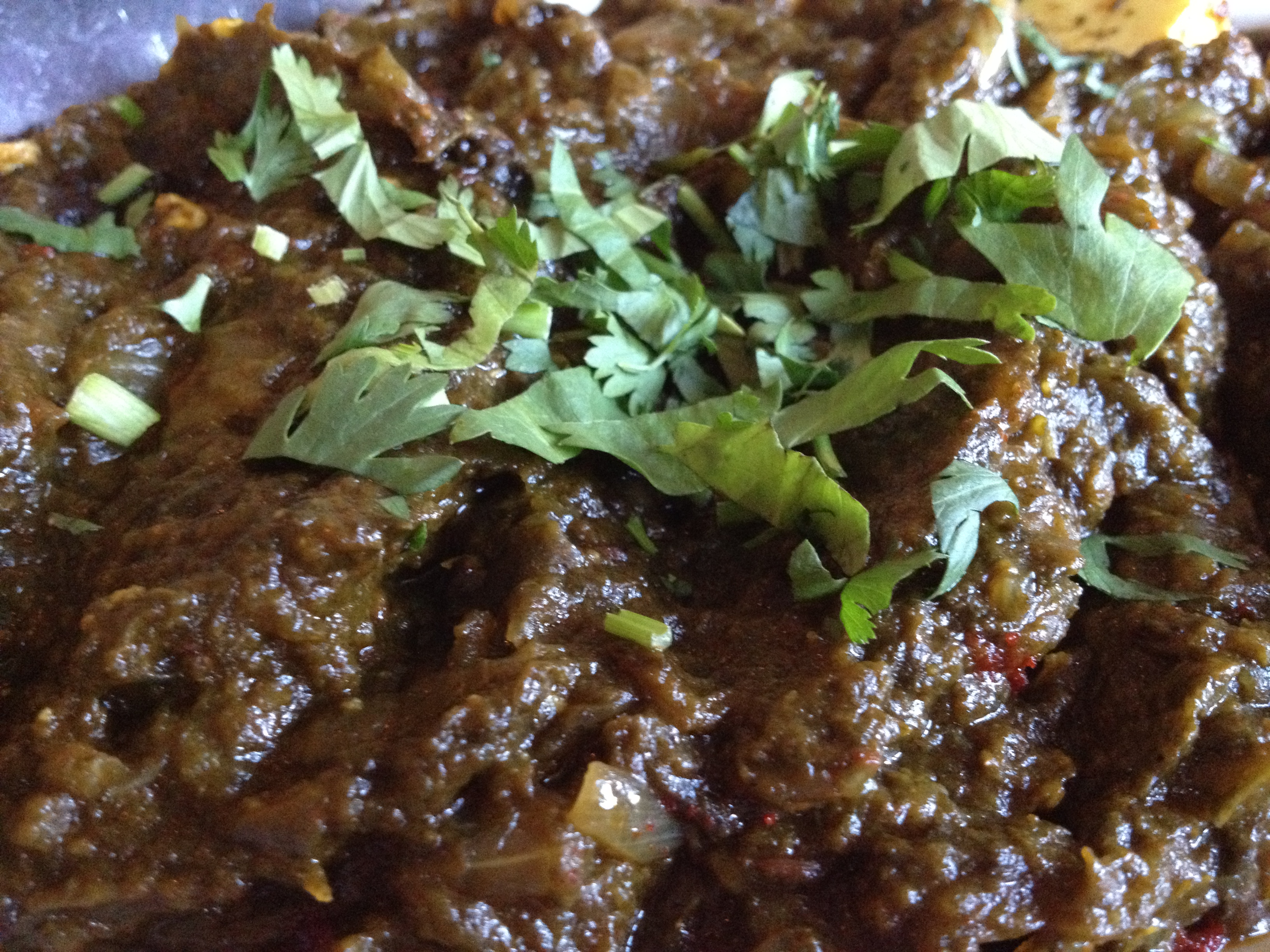 We were in the mood for Indian food, so we decided to try Flavor or India. I started with a salad that came with raita dressing. We then shared a few dishes. The first was the Benghan Bharta.