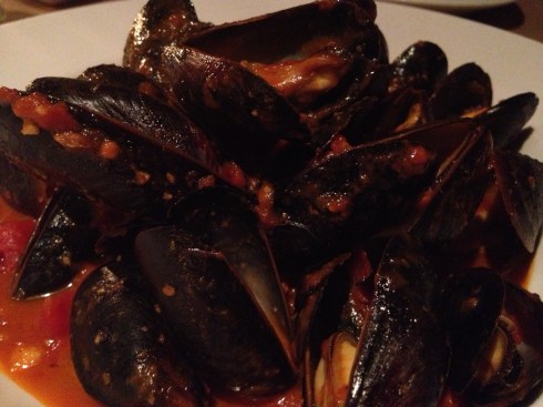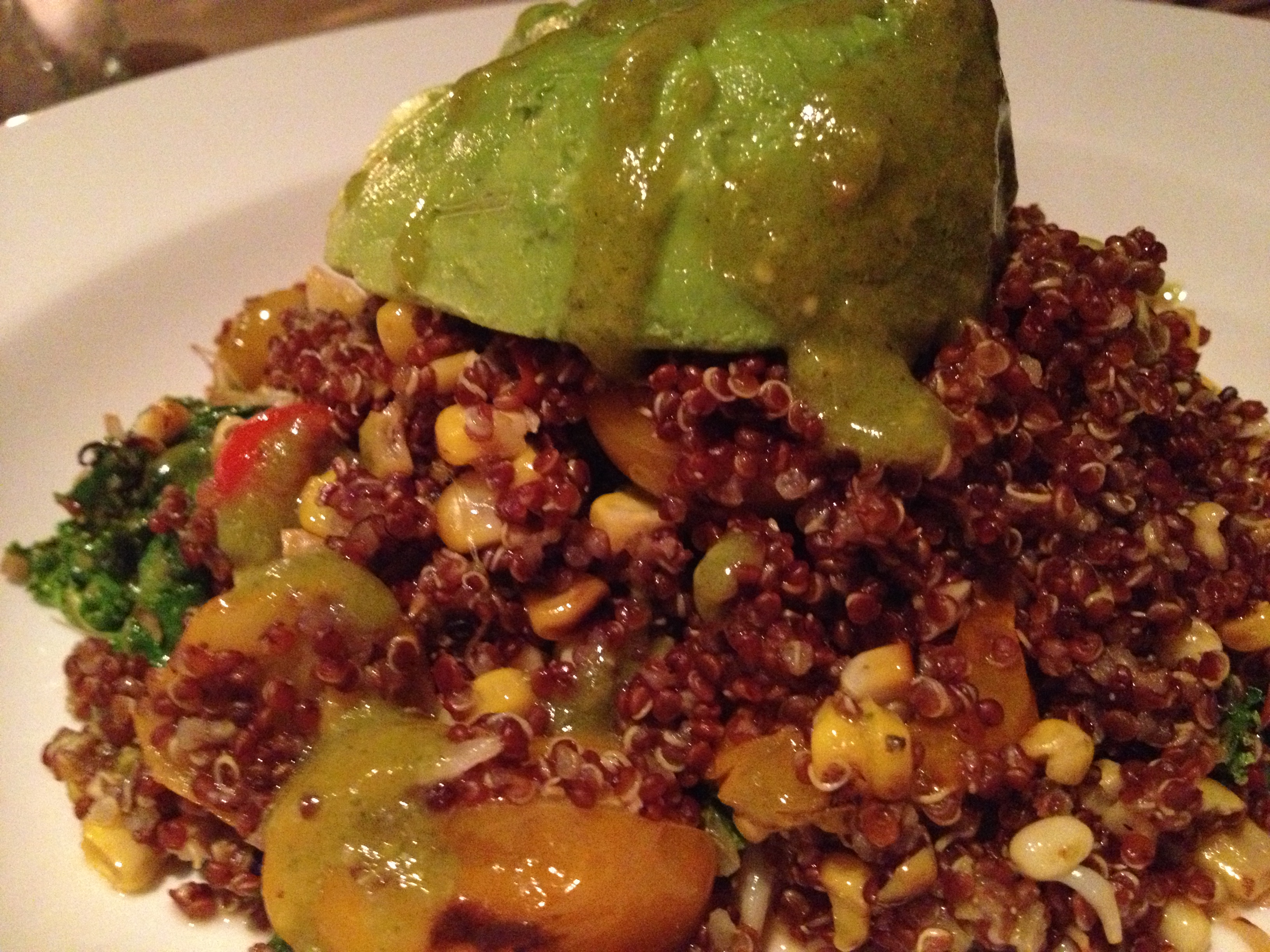This evening, we decided to try Montecito Wine Bistro. I started with the Nova Scotia Mussels Arabiata. These had roasted garlic, chili flakes, tomato, pinot grigio and saffron. For my main dish, I was intrigued by the Gluten Free Brown Rice Spaghettini. Rather than order that though, I got the Red Quinoa, Sprouted Mung Bean and Stir Fried Organic Kale.