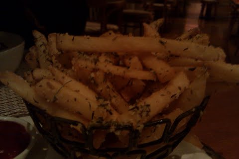 The pigs were only fed macadamia nuts and ran 20 kilometers a day so the meat was super lean. I had fish and a side of those Belgian fries for my main dish.
