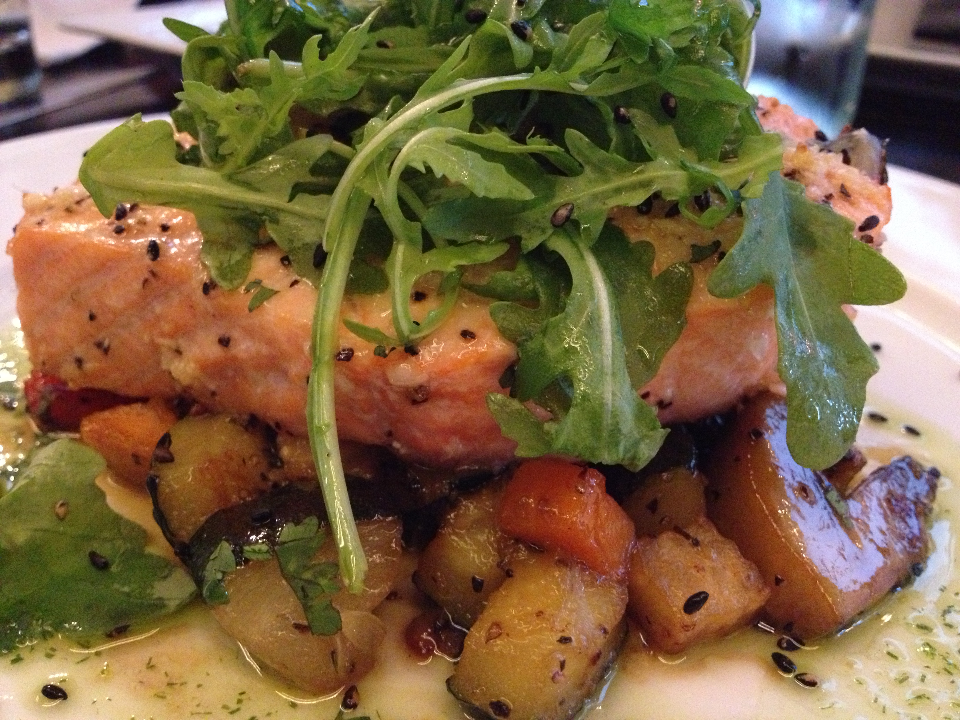 My favorite dinner spot in Iceland was Grillmarkaðurinn. The inside of the restaurant was super cool, feeling like it could have been in New York. I found the waiter to be very understanding of the gluten-free diet. I started with the Green Salad which had a lot more to it than I was expecting of a side salad. For my main dish, I had the vegetarian Peanut Steak.