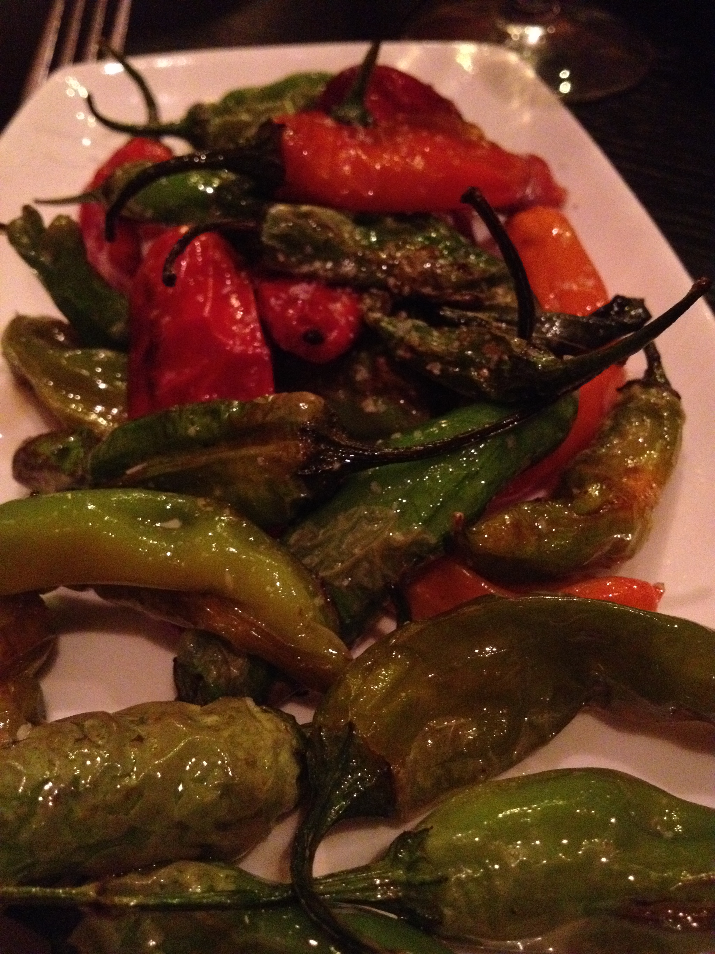 I loved that there were beets in this salad. It was lightly dressed with lemon and olive oil. I then had the fried green peppers and coarse salt.