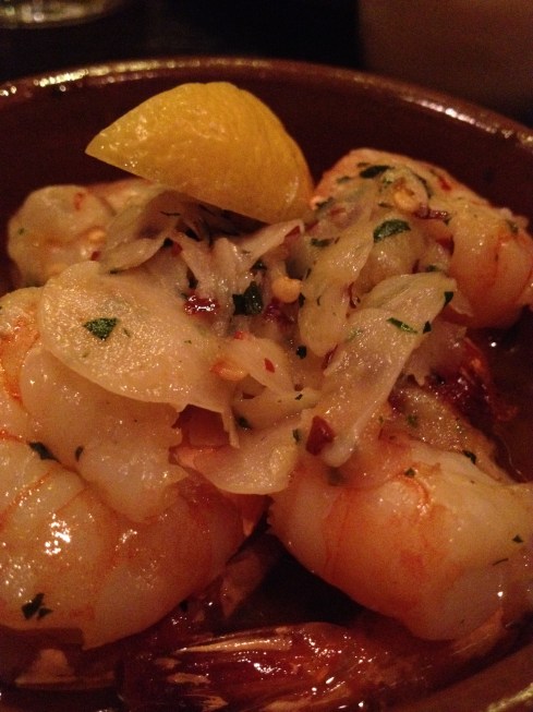 Our waiter assured me that these were made in a pan to avoid cross contamination in their typical frying oil. The last thing I ordered was the shrimp with garlic, olive oil and red pepper flakes.