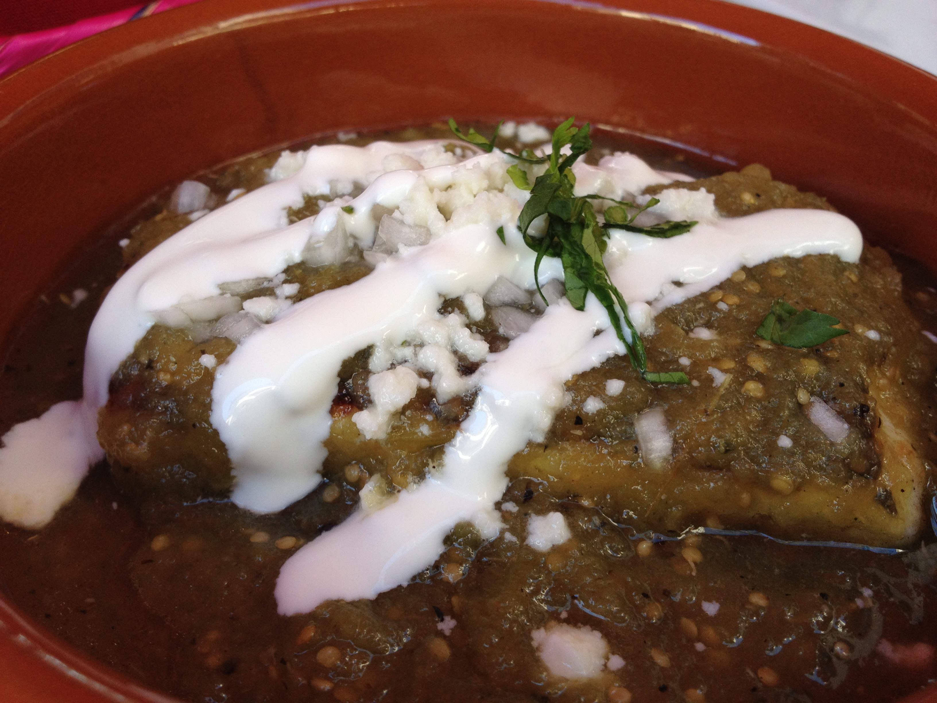 This had sweet corn, pozole corn, rich corn broth, cilantro mayo, anejo cheese and guajillo powder. After giving this a good mix, the flavors blended nicely. We order some guacamole for the table. The chips were not GF, so I just had some with fresh corn tortillas. For my main dish, I had smoked chicken queso fundido tacos which were served with fresh corn tortillas.