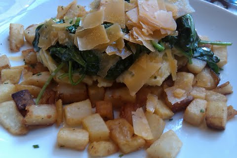 I love when I don’t have work on Sunday mornings because there is something about going out for breakfast on a Sunday that is just so enjoyable. Today, we tried Scarlett Begonia. As soon as we sat down, I saw that there was a gluten-free polenta and pear muffin on the menu. This was served warm and had a really good taste to it. While we started to devour that, we were served an amuse bouche. It didn’t appear GF so I stayed clear. I then had the soft scrambled eggs with spinach and aged gouda.