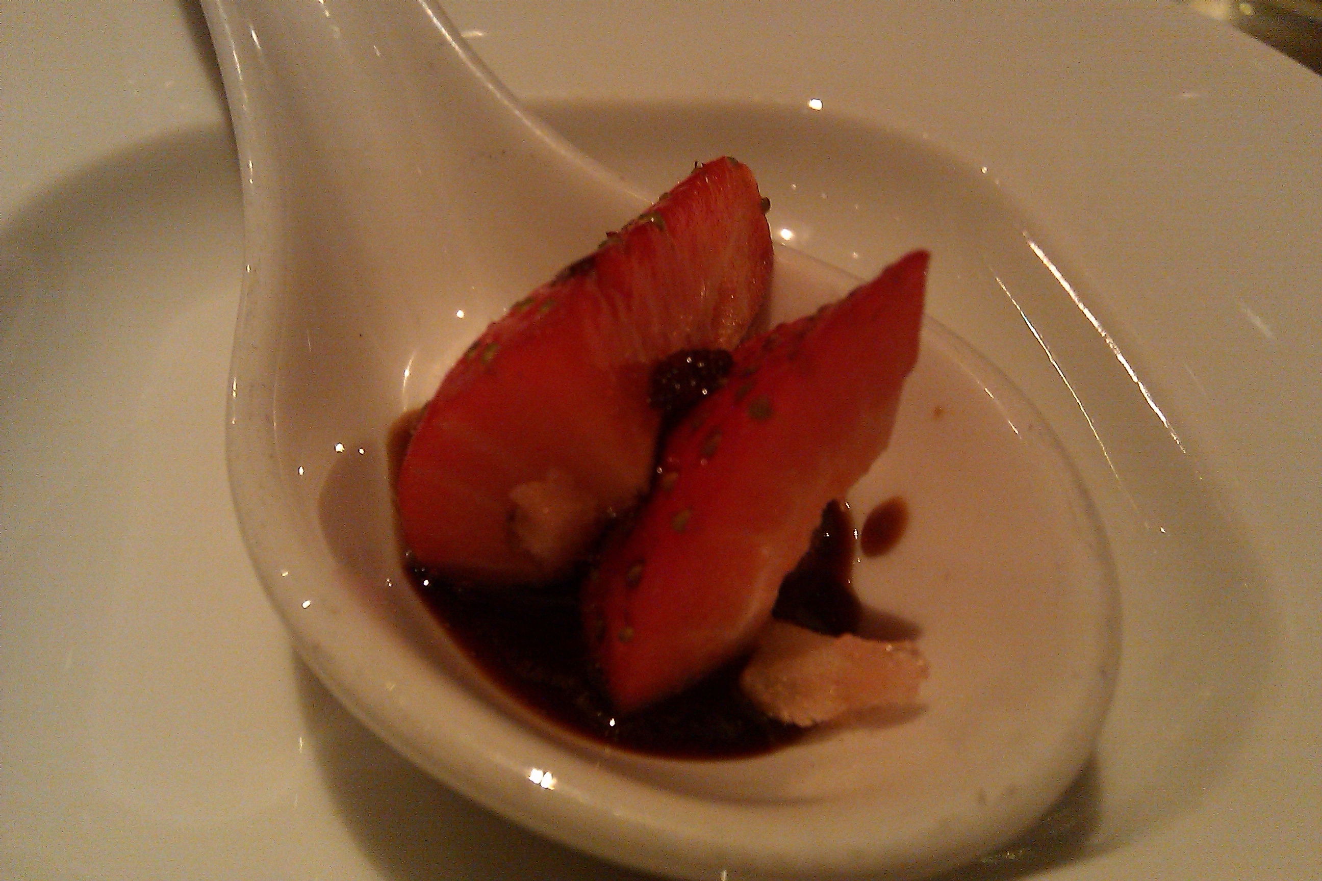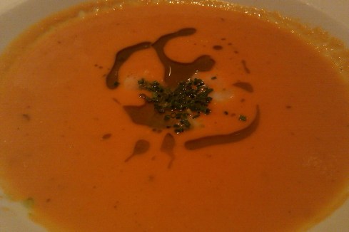 One of the days we were in Utah, we skied at Sundance Resort which is close to the home we were staying at. During the day, my husband and I had Kind Bars for lunch. When it was time for dinner, we were hungry. We went to the Tree Room at Sundance. First, there was an amuse bouche that was served. Since they couldn’t verify if it was GF, they gave me strawberries with balsamic that were good. I then had the special soup which was a corn soup with some chives and other tasty ingredients that I don’t remember.