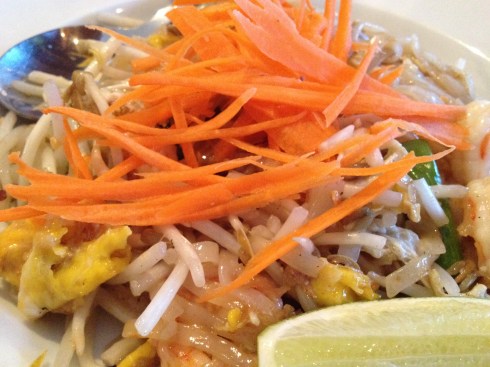 I ordered the Pad Thai with shrimp which was a pretty sizable portion. Even though the waiter checked with the chef to see what would be safe, I felt more comfortable eating at the noodle bar at the Public Market since everything was right in front of me. I think it was also because at the Public Market, I was able to speak with the owner directly whereas here, it was clear that the waiter wasn’t as knowledgeable about cross contamination until he spoke with the kitchen.